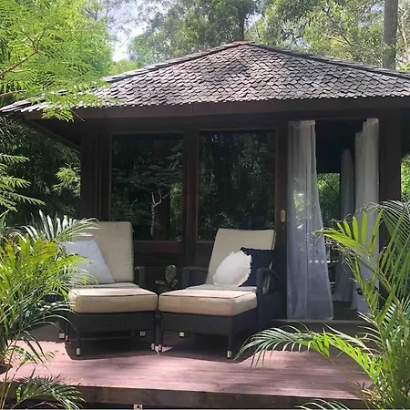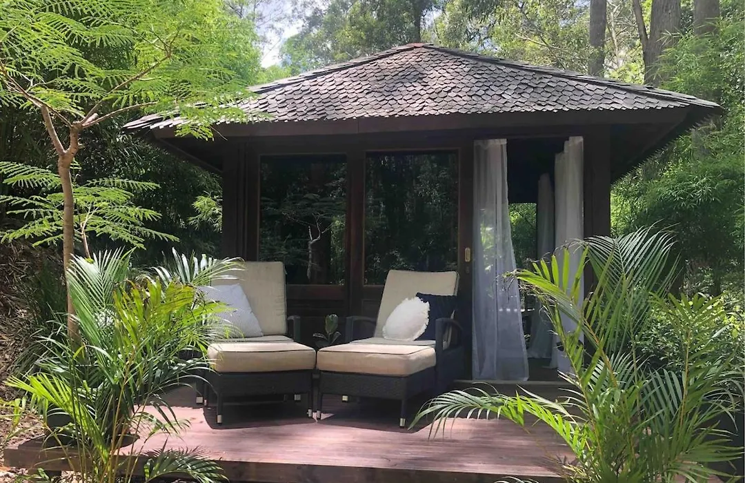 Earthly Retreat - Private Noosa Hinterland Getaway Appartement beschikt over een balkon, biedt airconditioning aan, en kijkt uit over de tuin. Gasten die verblijven in dit 1-badkamer appartement kunnen genieten van het gemak van handdoeken in de badkamer. Daarnaast vindt u er een apart toilet.